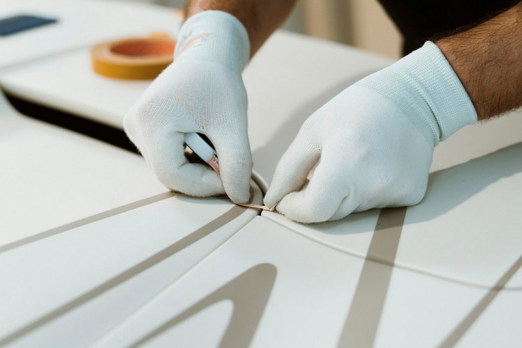 作為整體視覺核心,白金雙色分界線的實現過程極為繁複,由位於柏林的 BUGATTI 設計工作室主導。從精密的手工貼帶遮蔽,到歷時數週、在設計團隊全程監督下完成的細緻塗裝,數百小時的精湛工藝投入其中,體現出自始至終皆貫徹 BUGATTI 精神的極致匠心。