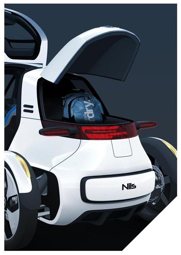 ![]() 所搭載的馬達最大功率輸出34匹馬力,最大扭力13.3公斤米。電池為蓄電容量5.3kWh的鋰離子電池。電動馬達與電池、傳動系統為一體化設計,來減少重量與體積,馬達本身的重量只有19公斤,非常地輕。NILS的0-100km/h加速成績可跑進11秒內,極速達130km/h,充電最快可以在二小時內完成,充飽電一次最多可跑65公里。至於操控起來的感覺?車廠表示跟Go Cart差不多。