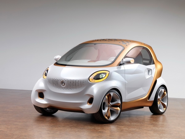 smart forvision concept 節能環保概念最新力作 始終走在世界汽車科技尖端的smart,4月於日內瓦車展推出forspeed概念車後,再度於法蘭克福車展上最新電動概念作品smart forvison concept,除了採用純電池驅動外,更與全球汽車零件最大供應化工大廠BASF合作研發採用多種頂尖科技,展現smart前瞻未來的領導地位。其外型前衛動感,蜂巢狀設計的玻璃車頂三明治結構部分,佈滿由光源啟動的感光顆粒太陽能電池,無論光源強弱,皆能產生供應車體本身所需之電力;而強調輕量化設計的全塑料輪圈及全碳纖維車門,更較原始材質減輕30%以上;獨特的不規則車門設計、能有效調節車體表面及車室溫度古銅色特殊塗料等,smart forvision concept集前衛外型、輕量化車體結構、溫度控管等新穎概念於一身,勢必再掀微型小車革命。