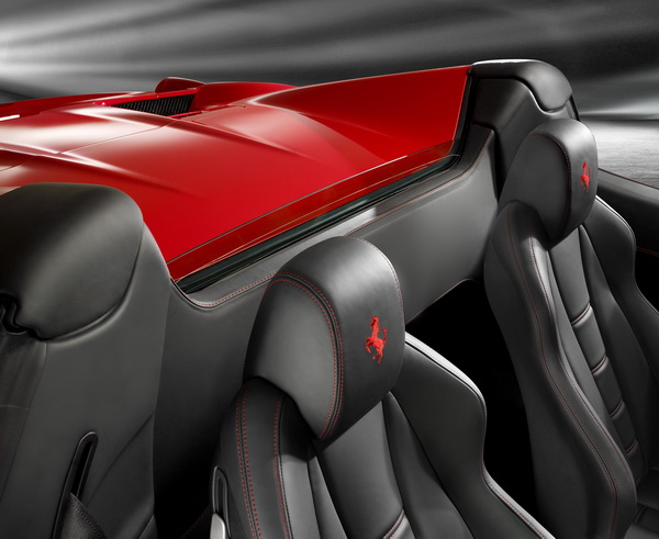 ![]() 與傳統的折疊式軟頂敞篷跑車相比,458 Spider採用的全鋁製硬頂具有更多優勢,如重量降低了25 公斤、開篷後更加安靜、熱效率更高,及開閉篷時間僅需14秒。此外,由於收容車頂僅需要很小空間,使得設計師能夠在座椅後部設置一個存放行李的寬敞平臺。