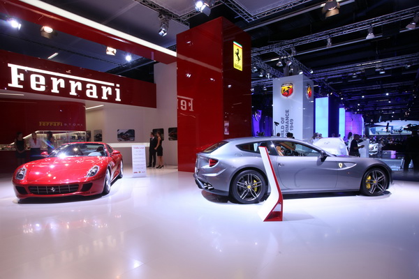 它的左右是兩款FERRARI法拉利12缸車型, 散發出傲視群雄的王者風範。FF是FERRARI法拉利有史以來第一款具有革命性的四座跑車,採用FERRARI法拉利的專利四輪驅動系統(4RM),將其660-CV引擎的空前性能與舒適性和多功能性相結合。在法蘭克福展出的另一台12缸車型為採用了HGTE套件的599 GTB。