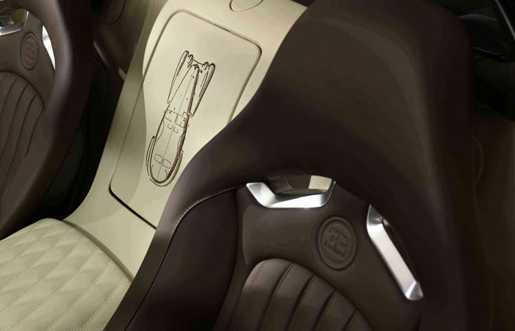車輛外部的EB標誌由稀有鉑金鑄造而成,而且為了契合原型車Type 57SC 的經典風格,排檔桿更是採用珍貴的紅木雕琢而成。更多傳奇限量版車型的經典設計項目還包括:中控台延展部分的皮革飾件上印有“Les Legendes de Bugatti”字樣;門檻踏板處鑲嵌的BUGATTI標識、Jean Bugatti肖像及簽名字樣。