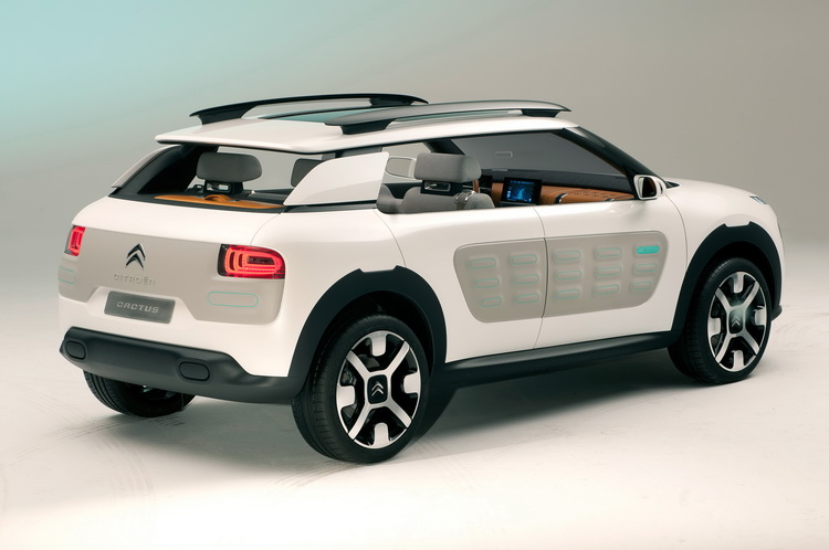 從其車長:4210mm、車寬:1750mm、車高:1530mm,車身距地高度:210mm的車身尺碼來看,是屬於小型跨界休旅車型。Cactus車身採用了稱為「Airbumps」的素材,顧名思義這種素材內部具有許多「空氣膠囊」,讓它帶有比較大的彈性,當車輛受到輕微撞擊時就可藉以緩衝達到保護車身的效果。