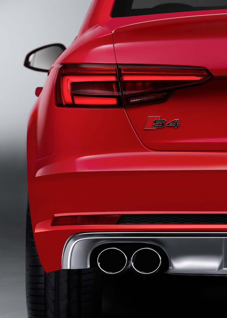 至於大家最關心的動力部分,新型S4搭載新開發的3.0升「TFSI」V型六缸汽油渦輪引擎,可輸出354hp最大馬力與51kgm最大扭力,且峰值扭力是在1300rpm~4500rpm的寬廣轉速範圍中均可輸出。所搭配的變速箱為新開發之八速Tiptronic手自排變速箱。0-100km/h加速成績為4.7秒,極速則被電子限速於250km/h。歐洲NEDC測試之下的平均油耗數據為7.4l/100km,二氧化碳排放量則為170g/100km。