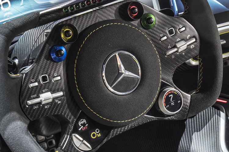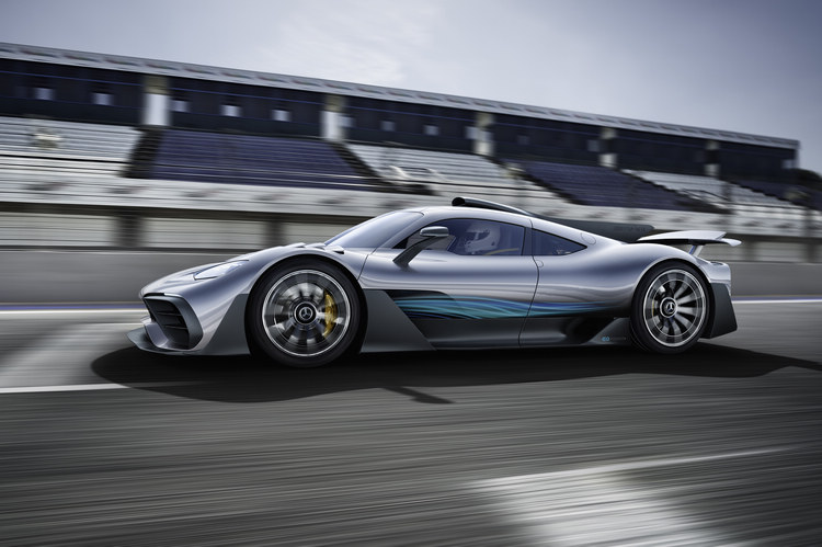 賓士在一級方程式錦標賽的成功,正逐漸將經驗與技術逐漸轉移至量產車,全新發表的雙座超跑Mercedes-AMG Project ONE展示車無疑是本次車展最大亮點,直接移植F1賽車的混動系統,由1.6升V6引擎結合MGU-K和MGU-H馬達,可輸出綜效馬力超過1000匹,極速上達350km/h,以此作為AMG成立五十週年的最大賀禮。