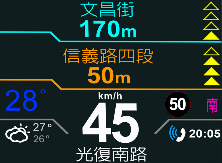 ![]() ▲社群通訊的功能也是本機標榜的獨有設計之一,透過預錄語音的方式傳至朋友或群組,或許可藉此減少低頭族在開車時拿起手機的機會。這套系統另一個特色是具備TTS語音朗讀功能,和手機連線後可以下載最新新聞、氣象和股市訊息(來源為Yahoo!網站),並以語音讀出內文,其中新聞並有政治、娛樂...等分類,使用者也可自行增減想要觀看的股票代號。 ![]() ▲沒有選配鏡頭時,畫面上也會顯示目前所在位置和即將抵達的位置和距離,至於其他連線功能則不受影響。而選配的行車記錄器也有夜視機型可在極度低照度下顯示前方100公尺的路況,這些都是HUD或是DVR比較少見的設計。