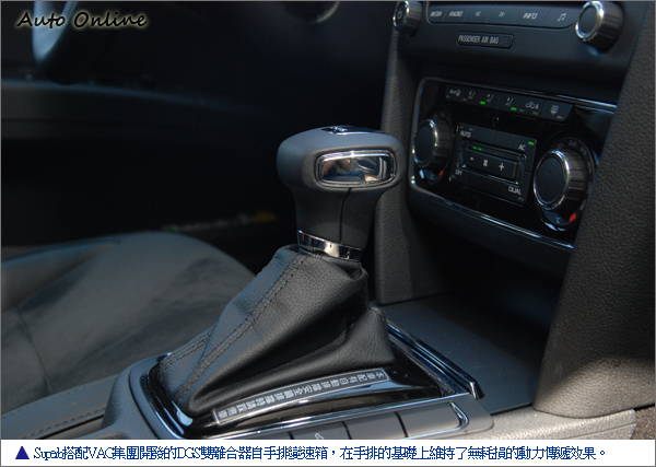 Superb並搭配VAG集團開發的DGS雙離合器自手排變速箱,在手排的基礎上維持了無耗損的動力傳遞效果;自動離合器的設計,則讓駕駛人省卻踩放離合器的不方便。嚴格說起來,這具有著聰明且快速變檔效率的DGS雙離合器自手排變速箱,可算是最適合懶人使用的手排變速箱了。