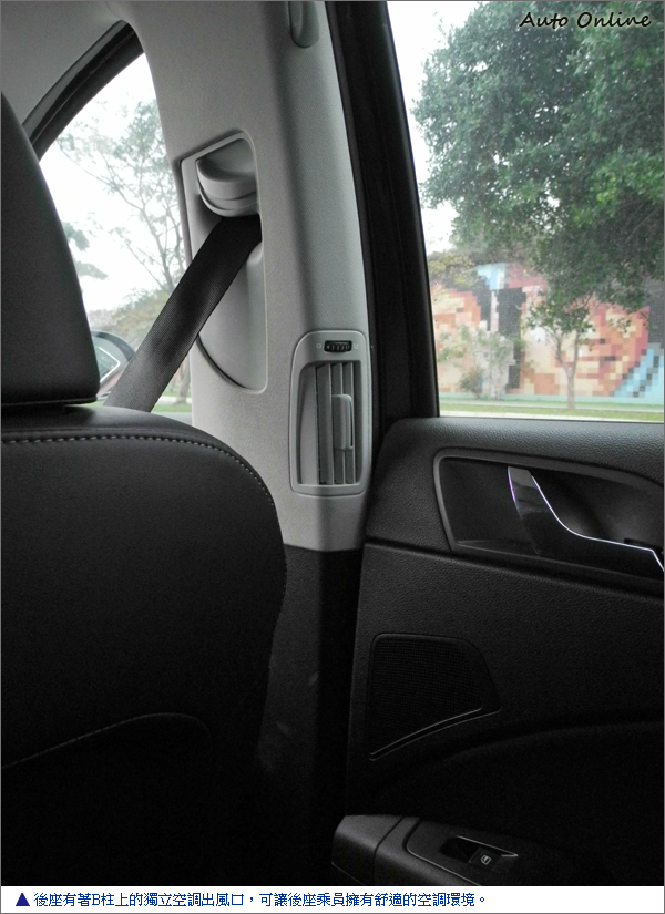 平時內人坐在PICASSO的後座時,想要拿個東西給我,幾乎只要手向前一伸,坐在駕駛座的我就可拿得到;但在Superb上,或許後座椅背向後傾斜的角度較大,加上前 / 後座的距離也比PICASSO的距離還要長上一些,所以在Superb上傳遞東西給我可沒有那樣簡單容易了。