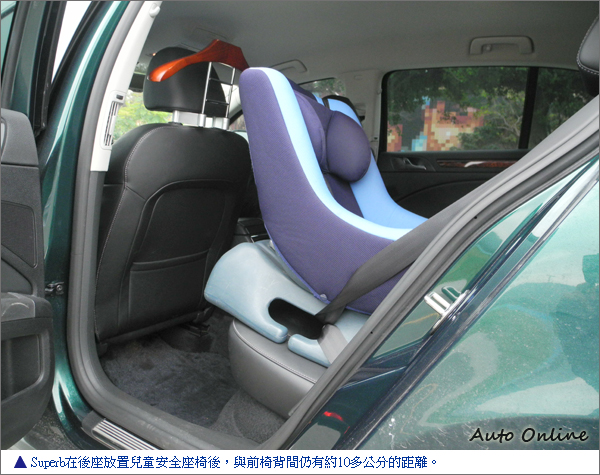 就以平常有在使用的兒童安全座椅來說,在相同都是我自己駕駛的情況下,Superb在後座放置兒童安全座椅後,與前椅背間仍有約10多公分的距離;而在PICASSO上裝置兒童安全座椅,其與前座椅背幾乎沒有間隔距離,直接就貼在一起了,由此可以看出兩者車室空間的差距。