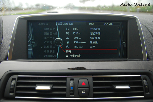 ▲試駕的640i更選配650i上才有的陶瓷音響、空調、iDrive控制旋鈕與排檔桿頭,讓640i的奢華品味更上層樓。