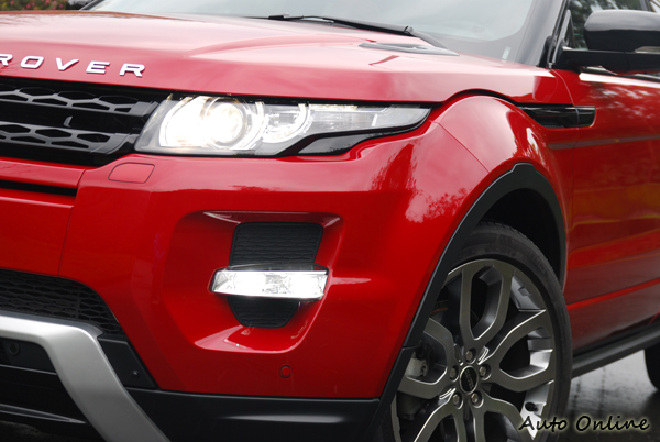 而車頭犀利的燈罩內,由LED環繞的遠近雙功能HID頭燈祖,其內建日行燈導光條,刻劃出象徵家族特徵的照明弧線,讓RANGE ROVER EVOQUE車首具備侵略性十足的樣貌。另外,再搭配下方光亮無比的LED霧燈,讓RANGE ROVER EVOQUE在夜晚五光十色的街頭,閃耀出使人無法值視的目光焦點。