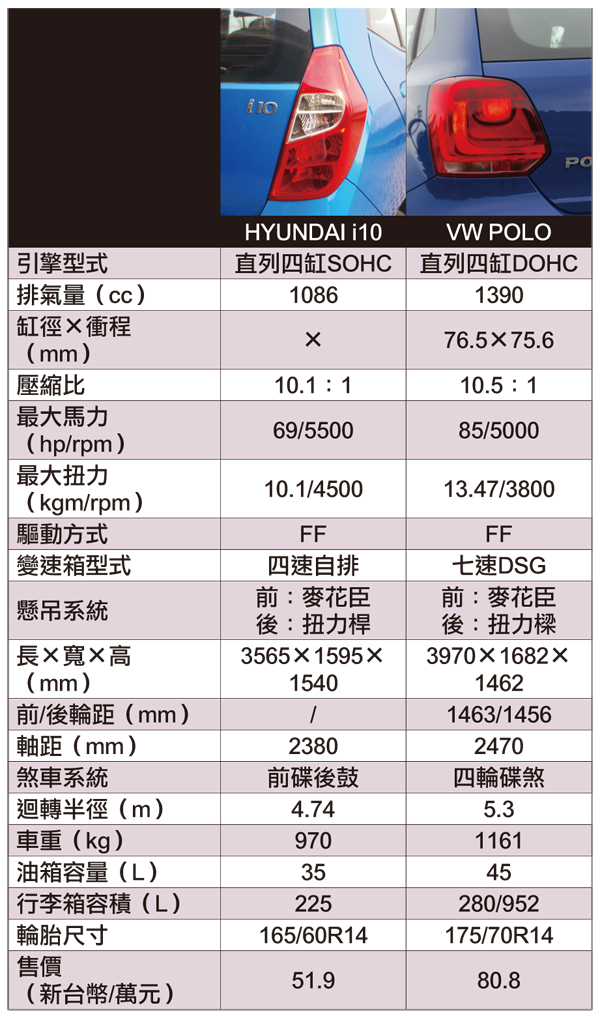 在這介紹的HYUNDAI i10和VW POLO兩款在價格上兩款車的價差快要達到30萬,正好是兩個極端的小型車。在我看來兩款車都是值得購買的車,只是看你要怎選擇而已。
