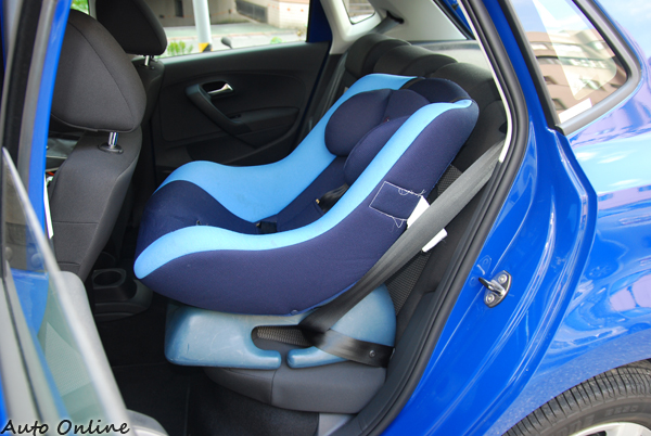 ▲POLO後座放上一張兒童安全座椅後的空間示意圖。