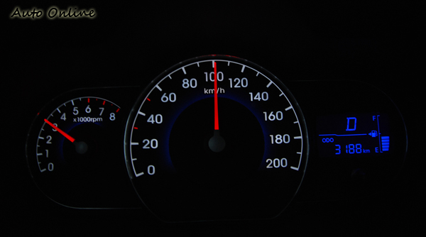 ▲i10當時速100公里時引擎轉速約莫在3000轉左右,若將時速提升到110公里,此時引擎轉速則上升接近3500轉。