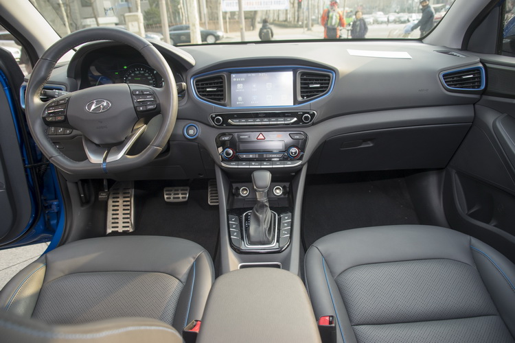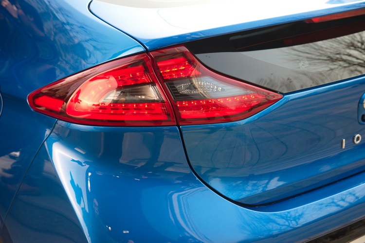 Ioniq Hybrid車身輪廓流暢,車頂線條低斜,構成擁有優異空氣動力特性的外型,包括頭、尾燈的造型都考量到引導前方氣流平順轉折至側面的作用;整合至車身的後擾流造型則可有效抑制空氣流至車尾後所產生的渦流與阻力,並增加下壓力來提升高速行駛時車身動態的穩定。在相當注重空力表現的設計之下,其空氣阻力Cd值只有0.24。