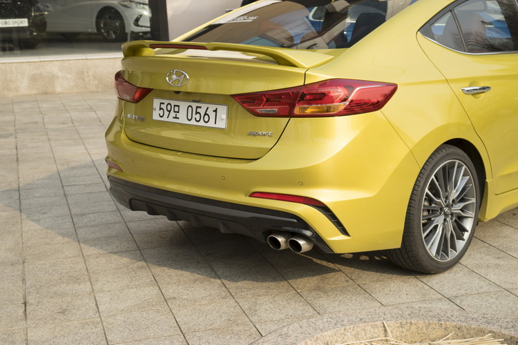 車尾與Elantra的差異首先是尾燈內部燈組設計不同,並配備了擾流尾翼,後保桿加入了左右兩道安裝反光片與散熱孔的線條。車底也配備整合了右側雙出圓形排氣尾管的分流器,吸睛度似乎比車頭還略勝一籌。