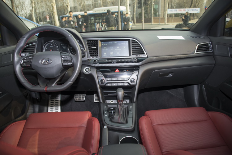 而在車內,最搶眼的自然就是紅色的前座跑車式座椅,提供比Elantra更優異的包覆性。所配跑車式方向盤為平底設計(原廠稱為D-CUT),激烈操駕時更好掌握方向盤轉動角度。至於最重點的動力部分,Elantra Sport搭載1.6升排氣量的Gamma 1.6 T-GDi汽油渦輪引擎,可以輸出203.6hp/6000rpm最大馬力與27.0kgm/1500-4500rpm最大扭力。變速箱原廠有六速手排與七速自手排的選擇,國內導入的則會是七速雙離合器自手排版本。