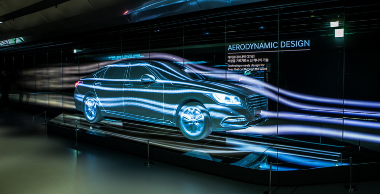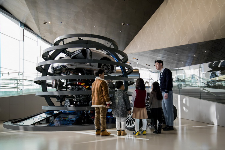 常設展示區整個形象館分為常設展示區與主題展示區,其中常設展示區在一樓部分所陳列的展品都強調參觀者以按鈕互動的方式,來了解一部車從最開始的鋼鐵原料熔化,是怎麼樣經過衝壓、焊接、塗裝、組裝等各個程序來完成一輛車的製造。而在「0樓」的區域,則是展示HYUNDAI在多個汽車科技領域中的研發思維,像是安全氣囊、撞擊安全、空氣動力、聲學(靜肅性)表現與動力系統,以創意的方式來做展現。