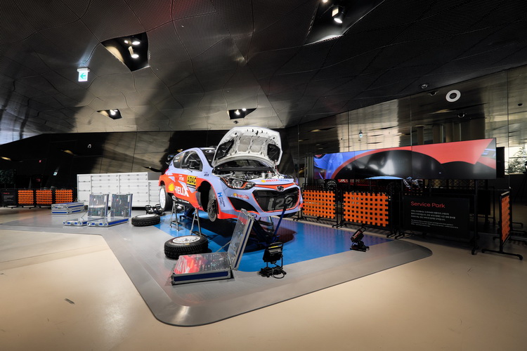 在軌道上跑的小型攝影機會持續穿梭於各個零組件間並將所拍到的畫面顯示於Loop下方的螢幕上。在位於台北內湖的HYUNDAI品牌形象館中看到的其姊妹作「Ensemble 機械狂想曲」,就是從韓國直送到台灣的。來到二樓,由於HYUNDAI有成立車隊參與WRC世界越野拉力賽事,所以規劃了一個空間來展示他們的i20廠車以及相關的零件、資料等,相信賽車迷們會很有興趣。