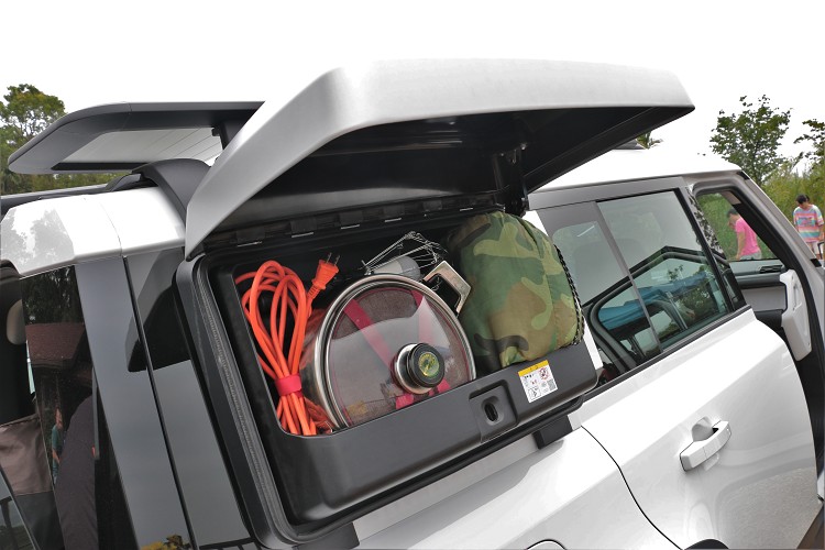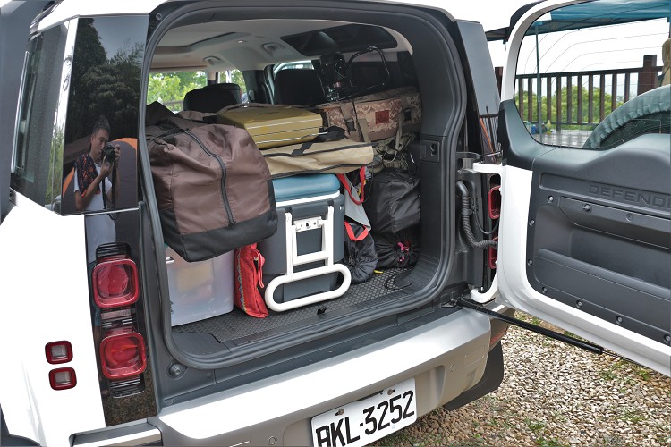 一輛好的露營車,最重要就是載物空間,能夠不影響乘坐人數又可擺放所有物品,這輛車在露營活動中絕對不會有負評。Defender在行李廂空間上,不傾倒第二排座椅就有768公升,這比起一般休旅車多了兩百公升左右。如果傾倒第二排單邊或者全部,置物容積就能達到幾千公升,而消費者如果選配七人座配置,就會影響到可置物空間,選配之前要想清楚。當後行李廂空間擺滿堆到頂天,駕駛也不用擔心後方視線被遮蔽,原廠標配ClearSight車內後照鏡,透過車頂天線後方的鏡頭還原後方視野,行李廂想怎麼塞就怎麼塞吧!別理睬駕駛了。
