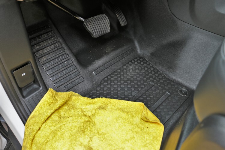 ▲車內塑料地板隨便擦擦、沖沖水易於清理。