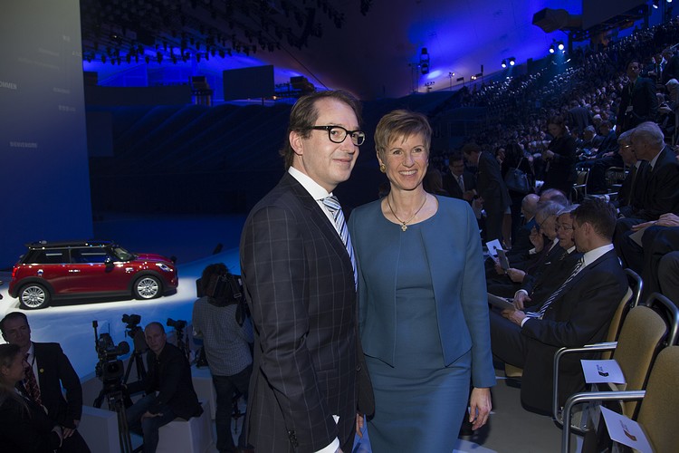 ▲Susanne Klatten(右)在BMW百年慶典中,與時任德國交通及數位基礎設施部長的Alexander Dobrindt合影。