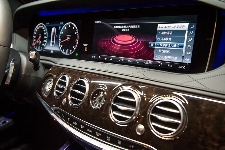 在這方面,S-Class 有個新推出的 ENERGIZING 舒活套件選配相當有意思,特別之處在於它同時整合了不同面向的舒適功能,像是香氛、負離子空氣清淨、氣氛燈、音樂、座椅通風、座椅加熱、熱石按摩等功能,只要選擇其中一個模式,上述功能就會切換到對應氛圍的情境。在這些功能之中,環景式內裝照明系統也悄悄進行改良,提供了64色氛圍燈、5段亮度調整以及10種多重色調模式,應該能夠滿足不同偏好的個別需求。