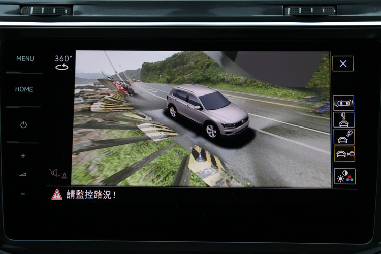 先進科技化的座艙配置![]() ▲車上各項座艙配備都展現出優越的科技層次,成為本車的特色之一。駕駛座艙的控制介面把儀錶台和中控台整合成為一體,作為車系旗艦的Tiguan Allspace 400 TDI Highline所標配的真皮運動型座椅,直接完整納入電熱、記憶和電調功能,包括同級獨有的全邏輯數位儀表和9.2吋全平面觸控螢幕,所有選單與操作項目,都是採用全中文介面來顯示,以最高規格提供給消費者。毫無疑問,座艙的科技層次是這款車的亮點之一,這也反應在它的安全設計上,其中包括許多消費者最想要的主動駕駛輔助系統,在Tiguan Allspace 400 TDI Highline都是標準配備。 ![]() ▲包括車速、定速巡航設定及導航等資訊,都會出現在抬頭顯示器上面。![]() ▲360度環車影像輔助系統能夠調整不同觀看角度,對於行車安全有絕對的加分作用。