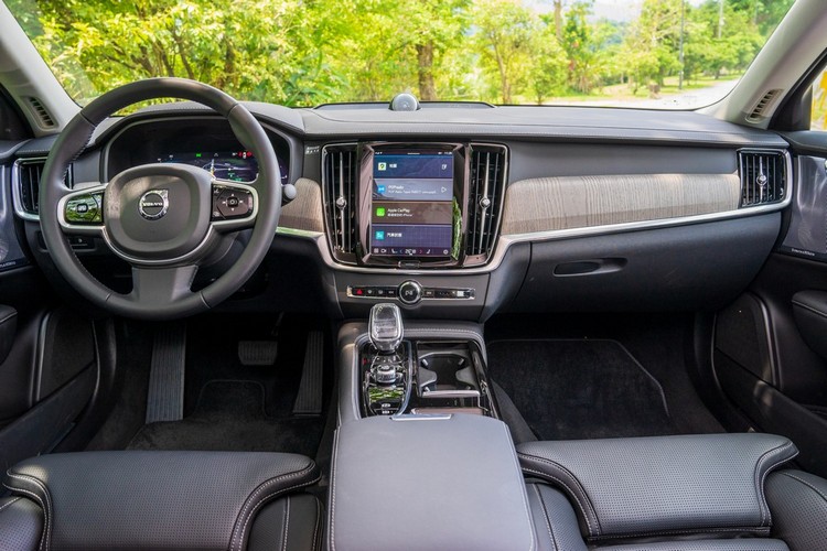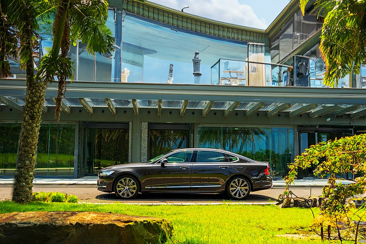 這一趟愉悅的旅程要從走近S90開始說起,很難得看到一台大型房車除了車身尺碼這種「天生的」氣派感外,典雅修長的身型真的就像是以黃金比例去雕塑打造而來。從前視角度望去可以感受到車頭的寬闊,透過直瀑式水箱罩的立體層次設計與鏡面品牌廠徽搭配貫前下氣壩的鍍鉻飾條將車頭的氣勢完全凸顯出來。而在車側,高聳腰線與寬厚肩線結合張力十足的外擴輪拱在紮實有力的安心感外更散發出雍容華貴的氣質。