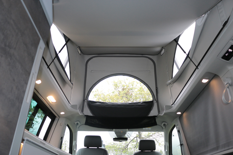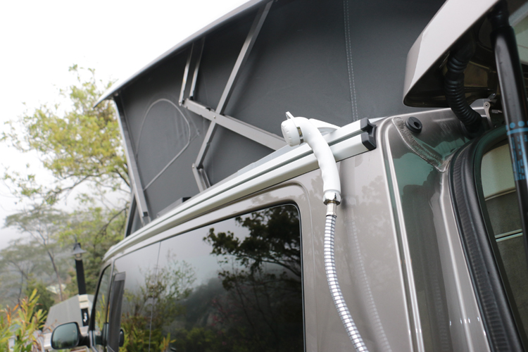 車內所有的電力經由車內額外電瓶所供應,引擎發動會為電瓶充電,又或者可由車側電源輸入孔進行供電,想知道電力還剩多少可由駕駛上方彩色觸控面板進行監控,車內像是光線、時間、駐車暖氣、車輛顯示角度以及車頂帳篷啟閉都能輕鬆操作。充電孔旁還有清水注入孔,用來供應車內水龍頭與後方外接蓮蓬頭水源,裝滿一桶水足以應付一個周末露營的用量。清水和污水槽狀態,同樣是從彩色液晶螢幕清楚掌握。 ![]() ▲車內原本的客廳空間,在晚上可以變成一張雙人床。![]() ▲車內所有車窗都標配遮陽簾,想要睡晚一點或注重隱私都不怕受到外界打擾。![]() ▲上舖的層板可以往上推,讓車內的高度大大增加,身高180公分的成人也能有非常寬敞的活動空間。![]() ▲座椅下方有收納抽屜,可以放置一些小東西,原廠標配滅火器也在這。![]() ▲為了防止睡上鋪的小朋友發生意外,原廠有附前方安全網預防掉落。![]() ▲車內櫃體裡面都埋有燈條,除了可做室內照明之外,也營造出柔和的車室氛圍。![]() ▲後尾門隱藏著兩張摺疊椅子,桌子則放置於側滑門內部。![]() ▲上層透過電動方式將車頂展開,變身為舒適睡眠區域,採用全新的碟型彈簧支柱設計,帶來更舒適的睡眠空間。![]() ▲上層有著居高臨下的視野,只要把前方的拉鍊打開,便能眺望遠方,成為風景第一排。![]() ▲外接式沖洗裝置,就算在野外,也不用煩惱清洗問題。