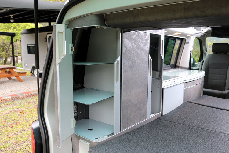 ![]() ▲露營車首選California「加州號」,隨著露營風氣變得火熱,露營車銷量來到新高峰。![]() ▲原廠內建床鋪、冰箱、瓦斯爐、洗手台、桌子及椅子等,讓露營出遊變得簡單。![]() ▲California Ocean的最大優勢就在於車內標配一應俱全,能作為客廳、廚房和臥室使用。![]() ▲平常車內布置可作為客廳使用,第二排標準雙座坐椅,駕駛與副駕可180度選轉,成為四人空間。![]() ▲車內左側有水槽、瓦斯爐以及冰箱,露營會使用到的配備一應俱全。![]() ▲駕駛上方彩色觸控面板可監控車輛各項訊息,像是車內光線、時間、駐車暖氣、車輛顯示角度以及車頂帳篷啟閉都能輕鬆操作。![]() ▲儲物空間就暗藏在座艙四周,有櫥櫃、抽屜、衣櫃以及車頂雜物盒,不會讓車內顯得雜亂。