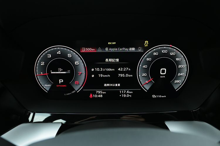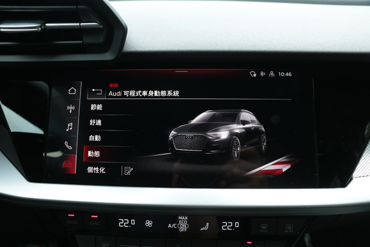 運動元素強烈的外觀造型,當然要配合科技感十足的內裝氛圍。來到科技大爆發時代,多數車廠都以曲面大螢幕為主要配備,但Audi依舊維持傳統,採12.3吋全數位虛擬駕駛座艙儀錶板和10.1吋MMI多媒體觸控螢幕各別布局,讓駕駛者如同車手在賽場上直覺有效率的判讀資訊。其餘車內科技配備還有Audi 智慧型手機介面、無線Apple CarPlay連接功能及無線充電座以及多彩環艙氛圍套件等。中央鞍座處可看到線傳排檔撥桿,周圍有機械感強烈控制按鍵,行車模式、ESC行車動態穩定系統以及待速熄火等功能都在此處調整。 ![]() ▲Audi維持傳統,採12.3吋儀錶板和10.1吋MMI多媒體螢幕分開布局,讓駕駛者如同車手在賽場上直覺有效率的判讀資訊。![]() ▲機械感強烈控制按鍵,行車模式、ESC行車動態穩定系統以及待速熄火等功能都在此處調整。![]() ▲中央鞍座處可看到線傳排檔撥桿,造型簡單粗暴,操作相當就手符合人體工學。![]() ▲drive-select可程式車身動態系統調整有五種模式,節能、舒適、自動、動態以及個性化,不同模式下方向盤力道和油門反應會有所不同。