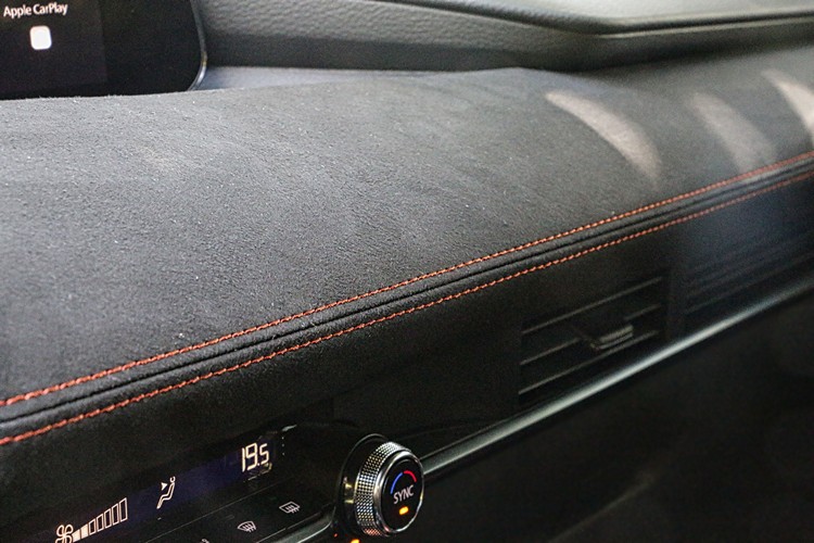 ▲中控台的Leganu®麂皮搭配赤陶紅縫線的鋪陳,凸顯日本匠人工藝於細節的考究。