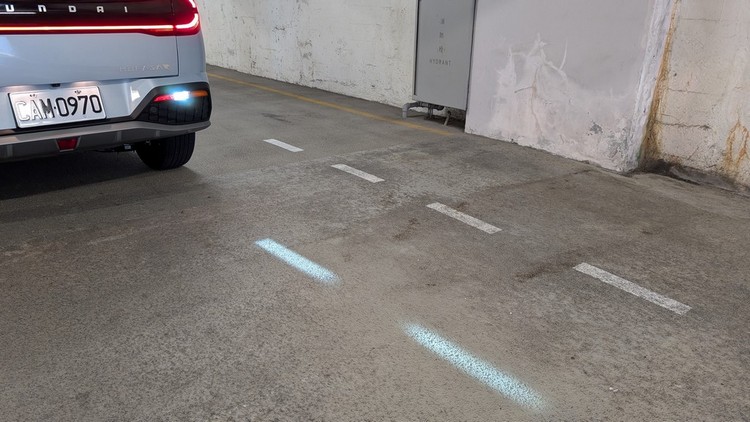 ▲投射式倒車燈倒車時可在車後方地面投射兩道光條,可提醒後方車輛行人同時也可做為判斷後方障礙物距離的參考