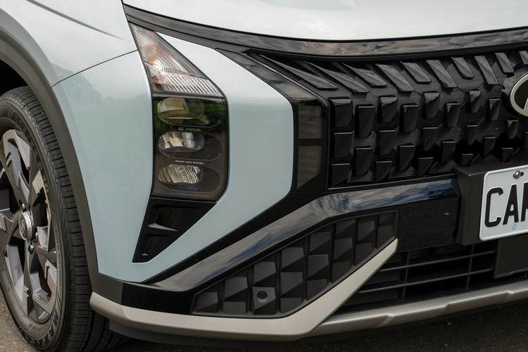 從外觀看上去,相信大家就會立馬覺得Mufasa的設計很不像傳統中型SUV,給人印象就是大膽且很有科技感,甚至也很有幾分電動車的味道。在氣勢上也不會輸給Santa Fe這種車身尺碩大的大哥。其中營造科技感的關鍵就在於品牌近年來非常愛用的參數化設計元素,在Mufasa身上更加入了鑽石幾何設計語彙,例如其直列式的頭燈在外側為頭燈組內側則為隱藏式LED日行燈。