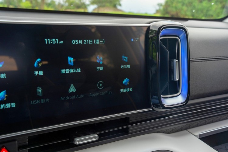 Mufasa車內的人因座艙設計也是相對其他國產中型運動休旅來說比較跳脫傳統的部分。前方控台真的是非常「水平調性」,從兩個無縫相連的12.3吋TFT-LCD數位螢幕到下方觸控式空調面板,線條簡單清爽看起來很舒服,而這也正是IONIQ5、6、9等純電家族車款的設計風格,以科技來簡化事物而不是讓事物變得更複雜。