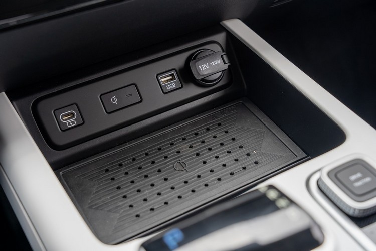 中控台下方置物空間的15W智慧手機無線充電板內有主動散熱風扇,同時提供USB-C、USB-A與12V電源插孔,也有手機立架設計