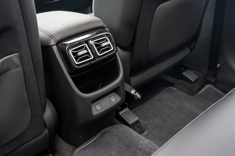 ▲後座出風口下方有2個USB-C插孔,旁邊則是副手座快速傾倒拉環
