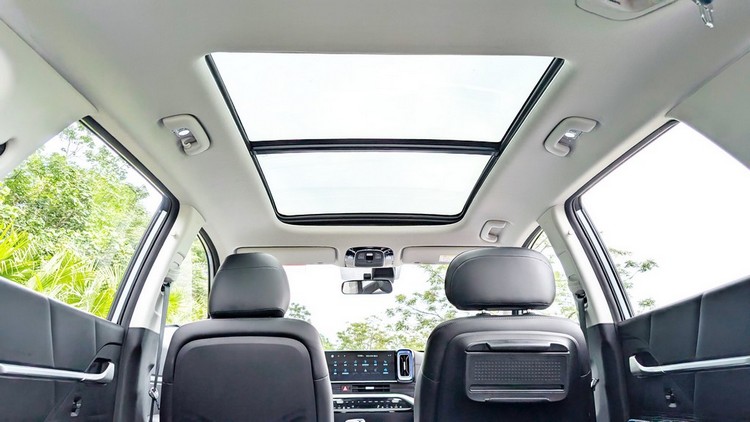 ▲全景天窗面積超過車頂2/3,並有電動遮陽簾與防夾功能