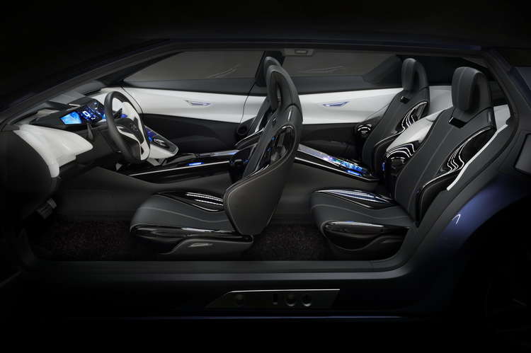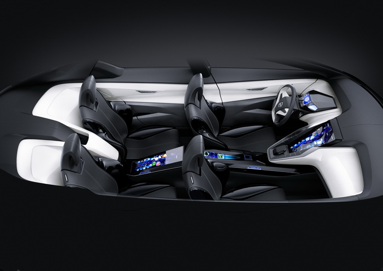 車內是四座獨立的設定,車內四名乘員可以共同分享車速、導航、剩餘油量等行車相關資訊。此外,四名乘員除了可以一起車內音響播放的音樂之外,也可以在自己的位置上各自聽自己喜歡的音樂。中控台則是前座一路延伸至後座間,讓四名乘員都可以在自己的位置上操作各項功能。呈现一個私密又互相連結的空間,讓車內的四位乘員能夠做到信息同步共享,正如同現代年輕人高度依存社群網站、通訊的生活形態。