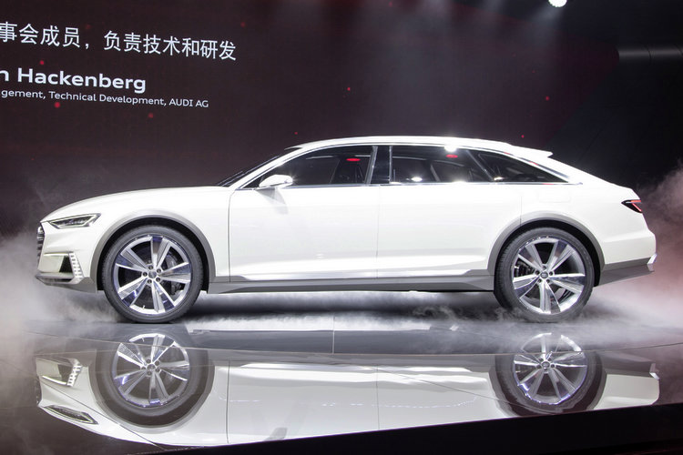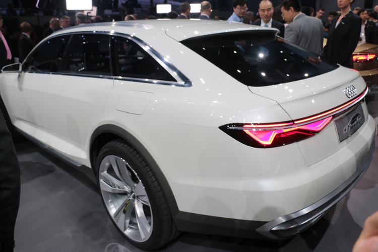 搭配quattro全輪傳動系統的Audi prologue allroad,是以五門車型設定的概念車,展示的正是未來AUDI座艙科技的研發成果,其中包括駕駛和乘客間的數位互動技術,而車上的插電式油電混合系統更可提供綜效馬力734hp的驚人成就,而且歐盟NEDC測試值41.7km/L的超低油耗更是最足以讓它自豪的特點。