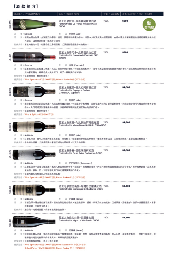 ![]() 聞名遐邇的巴羅縷(Borolo)及巴巴瑞斯科(Barbaresco)葡萄酒產區位於義大利西北部的皮蒙區(Piedmont),一直以來便是全世界頂級葡萄酒愛好者追求的珍釀酒款,由於其濃郁的香氣與厚實的酒體,素有「酒中之王」的稱謂。國王之泉酒廠位於皮蒙區的心臟位置,於1858年由義大利的首任國王艾曼紐二世(Vittorio Emanele II)所擁有,酒廠一直專注於釀造巴羅縷與巴巴瑞斯科的酒款,並僅供應皇家成員飲用。1878年,由其嫡長子艾曼紐公爵繼承後,除了仍為皇室釀酒外,始對外銷售。到2011年的今天,累積了153年的釀酒歷史與經驗,說是「酒中之王‧王者之酒」是實至名歸!