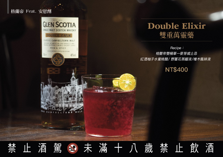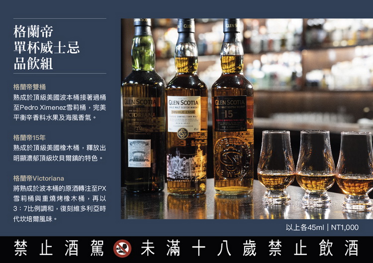 ![]() 2022年伊始格蘭帝特地與台灣六間非常知名的威士忌專業酒吧:小後苑、Trio安和店、FourPlay、Mod、The Public House以及安慰劑台中合作〈註1〉,推出以格蘭帝經典的雙桶〈Double Cask〉單一麥芽威士忌精心設計的創意特調,並同步提供由雙桶、15年、Victoriana三款格蘭帝最具代表性的單一麥芽威士忌優惠品飲組合〈註〉,邀請各位喜愛威士忌的飲迷一同來體驗這間坎培爾鎮經典酒廠的無窮魅力!活動現已開跑,直到情人節當日為止酒迷們都可以前往品飲,與重要的另一半共度最美好的甜蜜佳節!