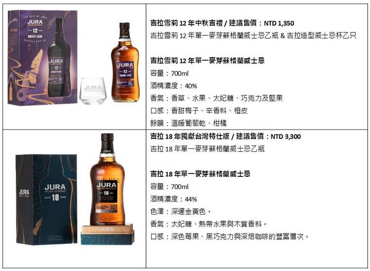 2022中秋佳節吉拉特別為台灣市場打造了二款不凡的贈禮選擇,讓消費者能夠透過獨獻台灣的限定禮盒傳遞與眾不同的佳節祝福。吉拉雪莉12年中秋吉禮,以甜美滑順的吉拉雪莉12年搭配造型大方的品牌威杯,盒身由吉拉紫色架構整體視覺,繪上吉拉島地圖與酒廠著名的蒸餾器。