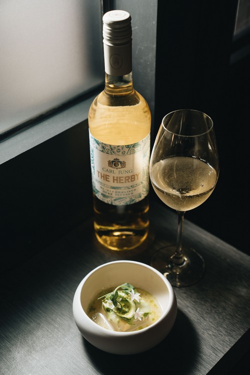 Tim 獨家為 CARL JUNG 百年酒莊 THE HERBY 草本風味白酒製作一款蘆筍酪梨開心果,藉由蘆筍的青草香、土壤味,與 THE HERBY 獨特香草風味結合,彷彿剛被雨水滋潤的大地禮讚;另一款 Chardonnay 夏多內白酒與Mousseux 穆瑟氣泡,則是搭配天婦羅&蔭鳳梨醬,酥脆口感中包裹著奶醬的鹹鮮與果香,將夏多內與穆瑟氣泡詮釋的清爽可人;Merlot 梅洛無酒精紅酒則絕配櫻桃醋無花果及藍紋起士,濃郁華麗,盡顯 CARL JUNG 梅洛的厚實口感;此外,最後一道甜點也不馬虎! Peach 蜜桃氣泡的迷人果香,與主廚悉心打造,充滿馥郁柑橘的點心搭配,呈現滿滿的名媛高級感。