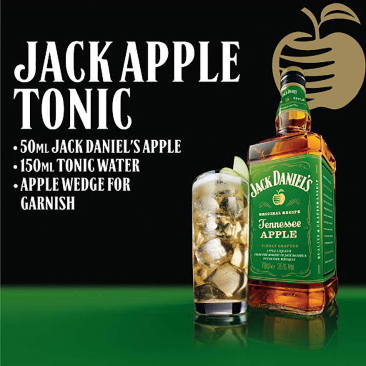 一直以來都具有彪悍陽剛形象的傑克丹尼,引進全新產品傑克丹尼田納西蘋果威士忌。同樣以經典7號作為風味基底,加入獨家青蘋果利口酒,由 Granny Smith(翠綠蘋果)、 McIntosh(旭蘋果)和 Red Delicious(五爪蘋果)三品種製成,如同新鮮採摘的蘋果,裝在一杯傑克丹尼田納西威士忌中,搭上傑克丹尼經典的烤橡木風味,既甜美又大膽的組合,令人回味。 傑克丹尼田納西蘋果威士忌香甜不辛口,非常適合啜飲,或是以蘇打水、檸檬汁搭配,最終使用檸檬片裝飾即成為一杯清爽順口調酒。檸檬與氣泡佐伴,傑克丹尼田納西蘋果威士忌果香豐盈,清新在齒頰間留香。不論是搭配軟性飲料的清爽調酒,或者輕鬆純飲、加冰塊飲用,傑克丹尼田納西蘋果威士忌皆能讓您感受濃郁果味與順滑尾韻。