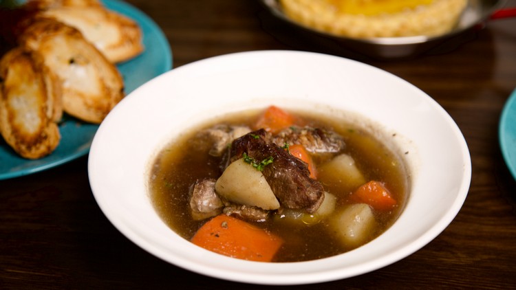 因蒙大拿州境內有 1/3 是山脈高地,2/3 則是廣袤的大草原,自 19 世紀中葉起,州際牛隻貿易和新品種的引入,牛肉也成為當地日常重要的食物來源。早期西北部牛仔會在工作後,宰殺一頭牛以示一天的辛勞。「西部牛仔香料燉牛湯」也因此而生,這道料理用牛肩胛、百里香與ABV特製香料熬製高湯。再加入胡蘿蔔與馬鈴薯燉煮,可嚐到牛肉的鹹香與蔬菜的甘甜。