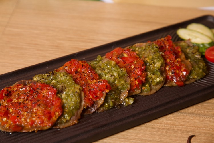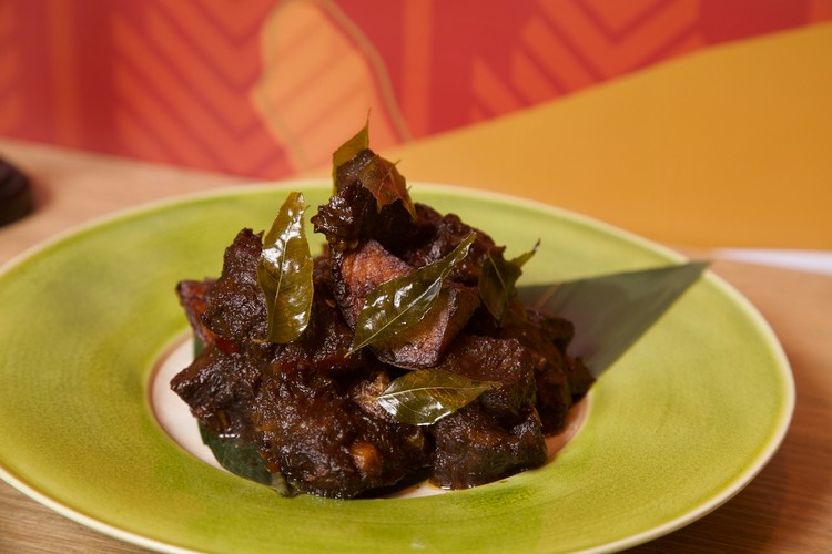 煎製至微焦的牛肉搭配紅綠兩種辣椒醬,鹹香微辣、層次豐富,是巴東家庭的經典主菜。