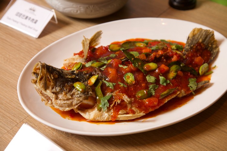整尾鱸魚炸至金黃酥脆,再搭配印尼特有的臭豆與辣椒醬炒製,香辣開胃、風味獨特。