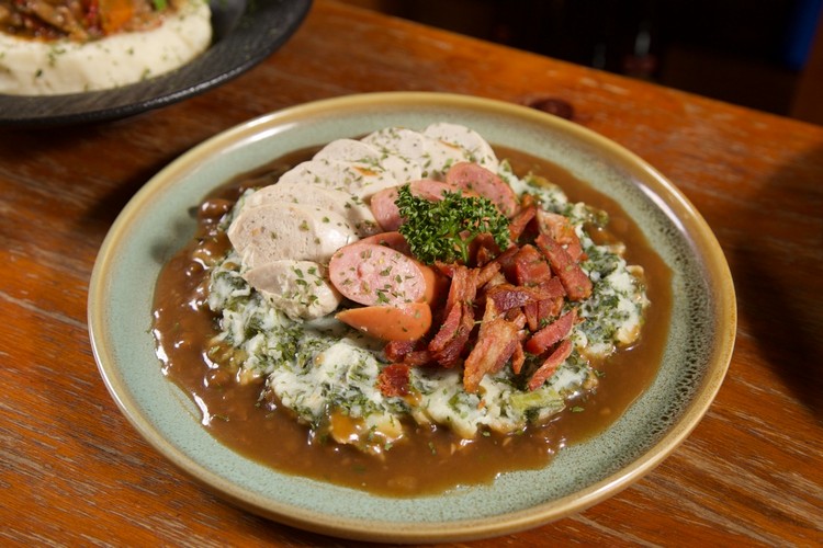 若要說最能代表荷蘭靈魂的料理,莫過於「鄉村風羽衣甘藍薯泥配香腸」。這道最具代表性的荷蘭傳統家常料理之一,以羽衣甘藍與薯泥混合,搭配多汁香腸,鹹香厚實、飽滿而溫暖,是寒冬裡最能撫慰人心的一道主菜。而在熱鬧的酒吧與節慶現場,「比特伯倫牛肉馬鈴薯球」則是最受歡迎的小點。牛絞肉與薯泥混合成球狀炸至金黃,外酥內嫩,入口爆汁,正是荷蘭人最熟悉的味道。